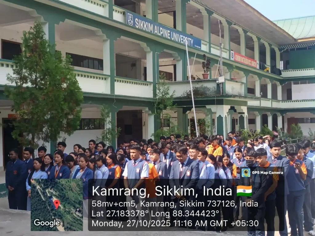 As part of the Vigilance Awareness Week 2025 (27th October – 2nd November), directed by the University Grants Commission (UGC) and the Central Vigilance Commission (CVC), Sikkim Alpine University organised simultaneous Pledge-Taking Ceremonies at Kamrang and Sunakhari Campuses on 27th October 2025 at 11:00 AM.